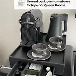 8 номерів оснащено телевізором з плоским екраном і супутниковими телеканалами, а також системою клімат-контролю. Окрім кавоварки, номери мають письмовий стіл. Поряд із окремим туалетом і душем у ванній кімнаті є фен і рушники.